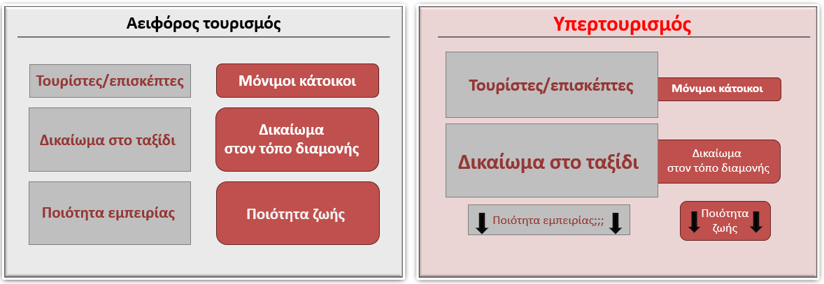 Πηγή: Tourism Generis, προσαρμογή από Perkumienė, D., & Pranskūnienė, R., 2019. «Overtourism: Between the Right to Travel and Residents’ Rights. Sustainability, 11(7), 2138. https://doi.org/10.3390/su11072138»